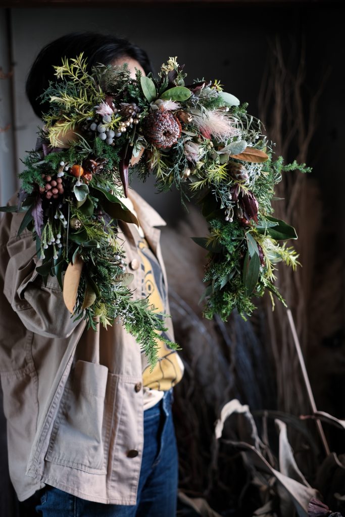11月のフラワーレッスンは、人気のクリスマスリースの製作。
