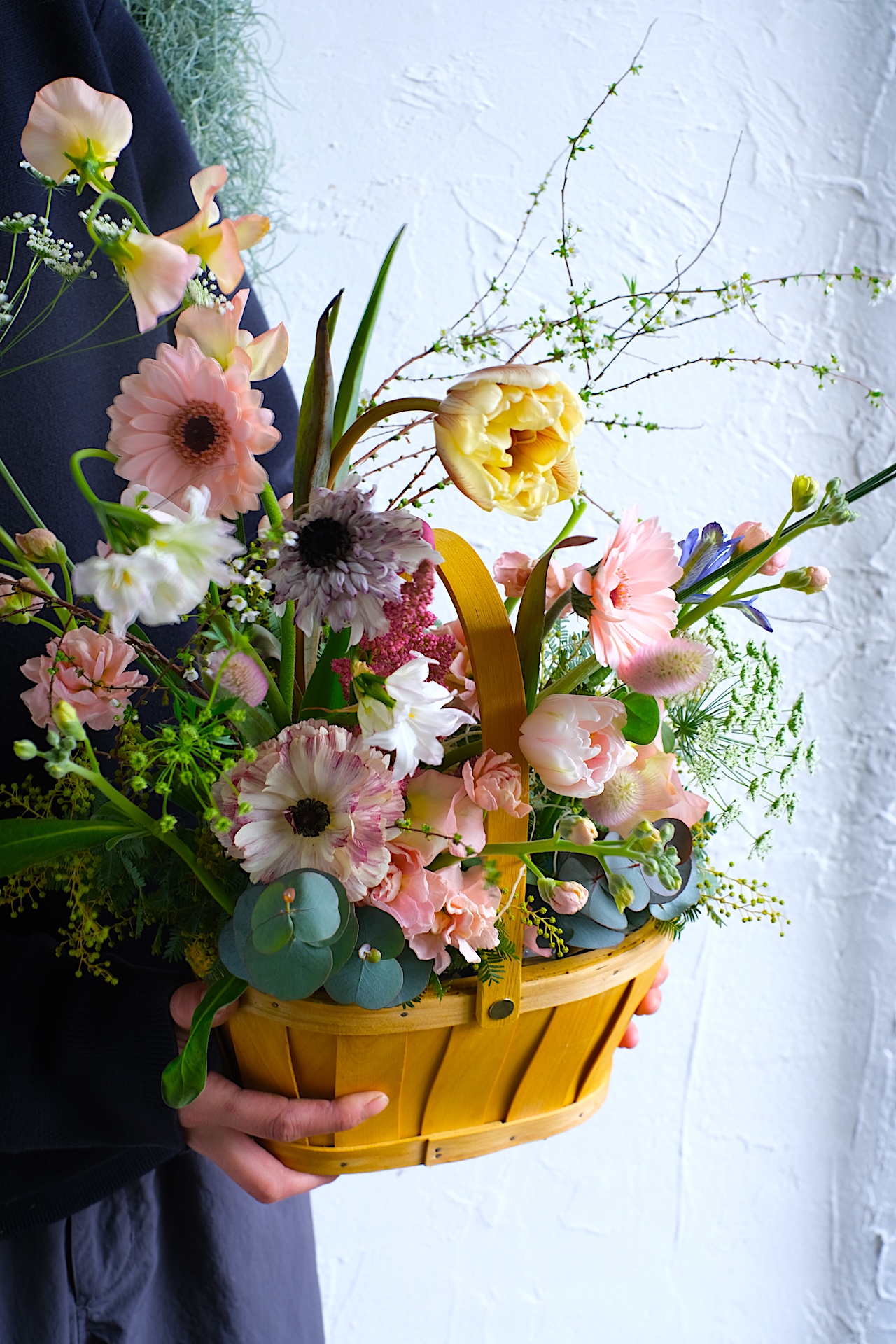 2月に開催のフラワーレッスンは、可愛いバスケットに春を詰め込んだ可愛いアレンジメントを制作。2月限定のレッスンになっておりますので、お早めにご予約お待ちしております。