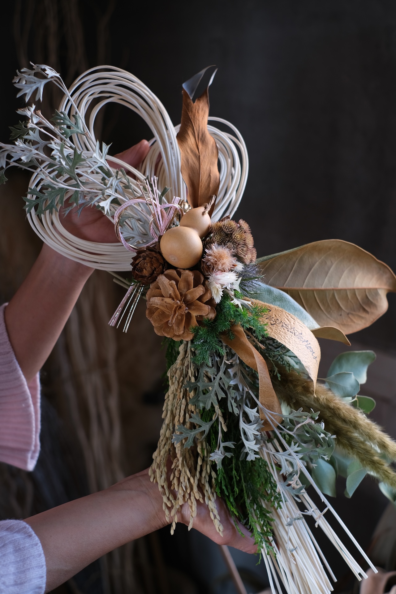 12月のフラワーレッスンは、人気のしめ縄の製作。